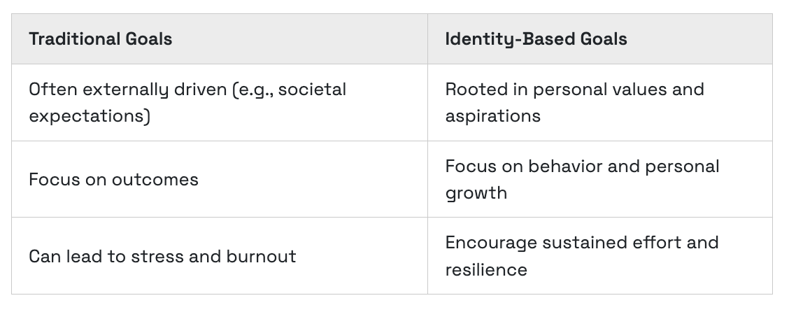 By aligning your goals with your identity, you're not just chasing an outcome. You're reshaping your actions, attitudes, and habits to transform into the person you aspire to be. That's a potent motivator.