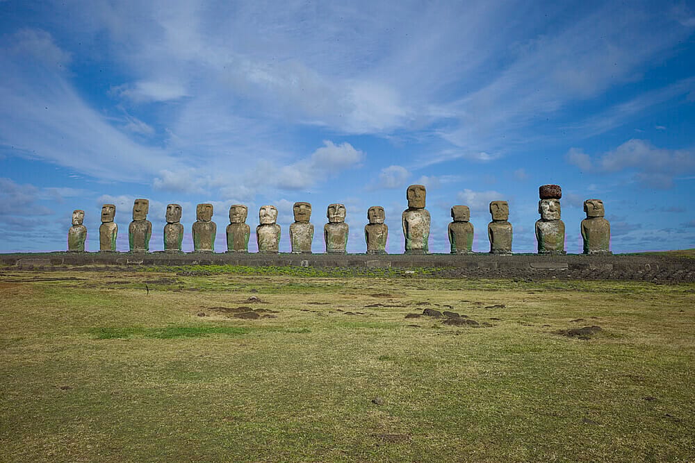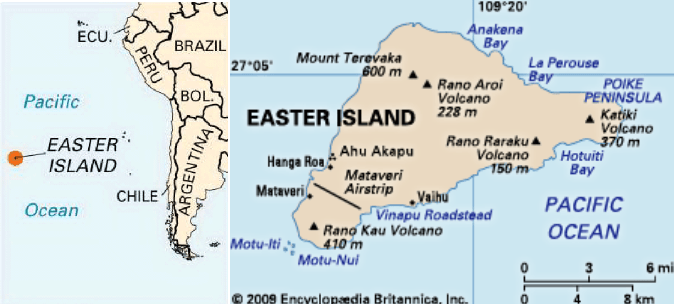 Easter Island was originally settled around 1200 CE by Polynesian navigators, located deep within the south-eastern Pacific Ocean, around 3,500 kilometres/2,175 miles west of Chile’s coast. The island itself covers an area of around 163.6 square kilometres or 63.1 square miles with a known population of about 7,750 people (as of 2017). It was an island that was covered with dense forests, including the now-extinct Easter Island palm but now is mostly grassland with few trees primarily due to historical deforestation.