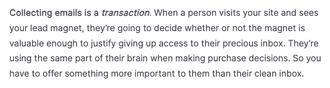 So I was reading an article last week about how to grow your email list and found a paragraph which stood out: