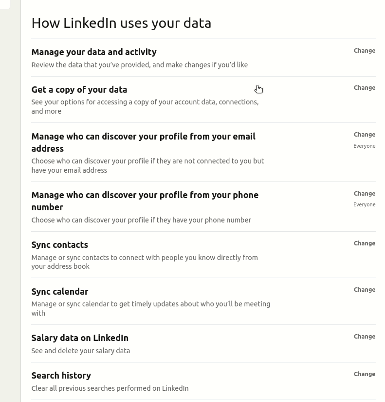 For LinkedIn, in particular, I’ve taken an extra precaution (because of what I shared in Issue #109, where LinkedIn suspended my own account). Every few months, I export my content and data—a feature tucked away in LinkedIn’s settings. This ensures that even if LinkedIn pulls the plug on my account, I’ve got a record of my connections, post history, and data, ready to be deployed elsewhere.